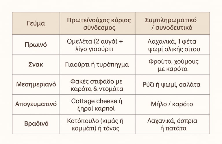 Παράδειγμα “ημερήσιου μενού” με οικονομική πρωτεΐνη